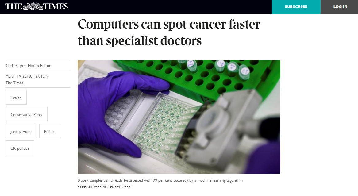 今年,鼓樓醫(yī)院與云創(chuàng)大數(shù)據(jù)聯(lián)合研究的人工智能程序,對(duì)于前列腺癌的診斷準(zhǔn)確率達(dá)到了99.38%。此項(xiàng)聯(lián)合研究成果得到《泰晤士報(bào)》、《福布斯》、《每日郵報(bào)》、《優(yōu)瑞科》等媒體的廣泛報(bào)道。