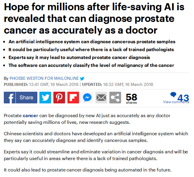 在人工智能逐漸融入人臉識(shí)別、語(yǔ)音識(shí)別、語(yǔ)言翻譯等領(lǐng)域研究的同時(shí),醫(yī)學(xué)AI應(yīng)用和研究也在如火如荼的開(kāi)展。對(duì)于前列腺癌等疾病而言,提高早期檢出率,提前預(yù)測(cè)癌癥的發(fā)生,對(duì)于減輕病人的痛苦,甚至是挽救病人的生命,都有著重要意義,這也是此項(xiàng)研究得到來(lái)自英國(guó)、美國(guó)、印度等多國(guó)媒體廣泛報(bào)道的重要原因之一。