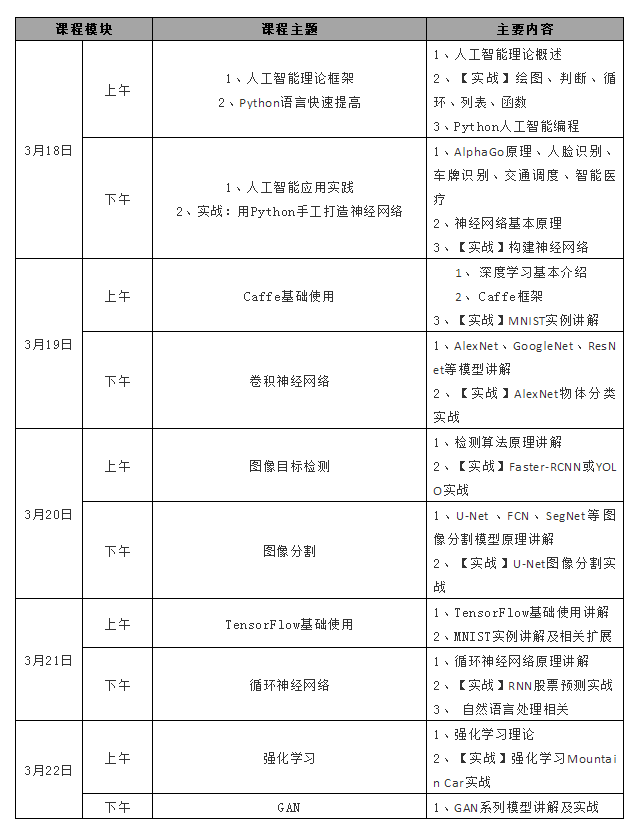 2019人工智能實戰(zhàn)培訓大綱