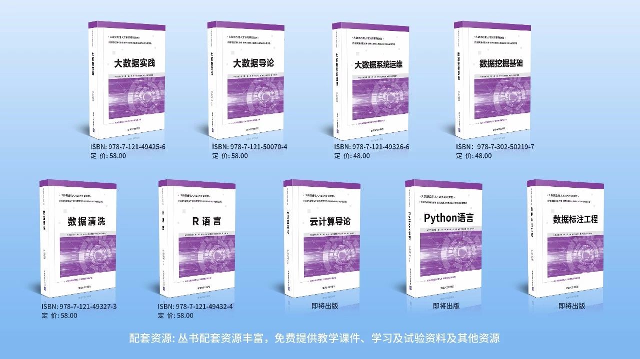 在大數(shù)據(jù)行業(yè)愈發(fā)火熱,人才需求不斷增加的趨勢(shì)下,清華大學(xué)博士、南京大數(shù)據(jù)研究院院長(zhǎng)劉鵬教授策劃編寫了這套“大數(shù)據(jù)應(yīng)用人才培養(yǎng)系列教材”。除了以上3冊(cè)圖書之外,該套叢書還包括《大數(shù)據(jù)實(shí)踐》、《大數(shù)據(jù)導(dǎo)論》、《數(shù)據(jù)挖掘基礎(chǔ)》、《R語(yǔ)言》、《云計(jì)算導(dǎo)論》、《數(shù)據(jù)標(biāo)注工程》6冊(cè)圖書。此外,該套叢書還有配套資源,免費(fèi)提供教學(xué)課件PPT,學(xué)習(xí)以及實(shí)驗(yàn)資料等。