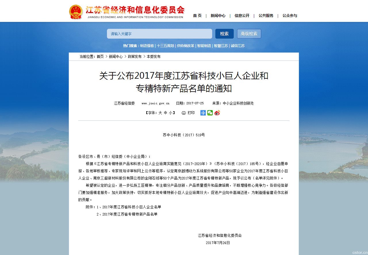 4.被認定為“江蘇省科技小巨人企業(yè)”