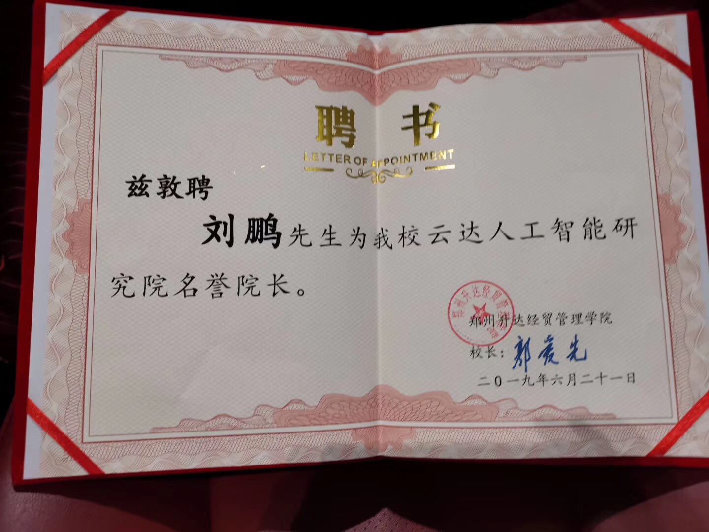 2019年6月21日,鄭州升達經(jīng)貿(mào)管理學院與南京云創(chuàng)大數(shù)據(jù)科技股份有限公司聯(lián)合成立云達人工智能研究院戰(zhàn)略合作協(xié)議簽約暨揭牌儀式在該校雙創(chuàng)大講堂舉行。該校董事會執(zhí)行董事王新奇博士、吳益民副校長、信息工程學院院長李學橋教授、副院長白鑫副教授出席了本次儀式,該儀式由副校長吳益民主持。清華大學博士、云創(chuàng)大數(shù)據(jù)總裁、中國大數(shù)據(jù)應(yīng)用聯(lián)盟人工智能專家委員會主任劉鵬教授同時受邀參加。