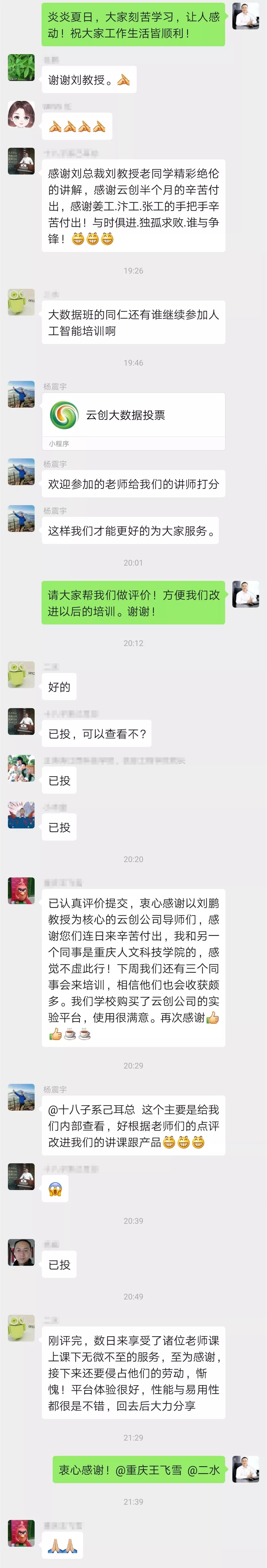 由于課程系統(tǒng)扎實(shí),講師專業(yè)負(fù)責(zé),配套資源豐富,服務(wù)到位貼心,培訓(xùn)結(jié)束之際,學(xué)員對(duì)云創(chuàng)能夠舉辦這樣的培訓(xùn)班表達(dá)了感謝之情。不少學(xué)員反饋,兩周的培訓(xùn)十分實(shí)用,在教學(xué)育人、進(jìn)行科研以及開展工作等方面收獲頗豐!