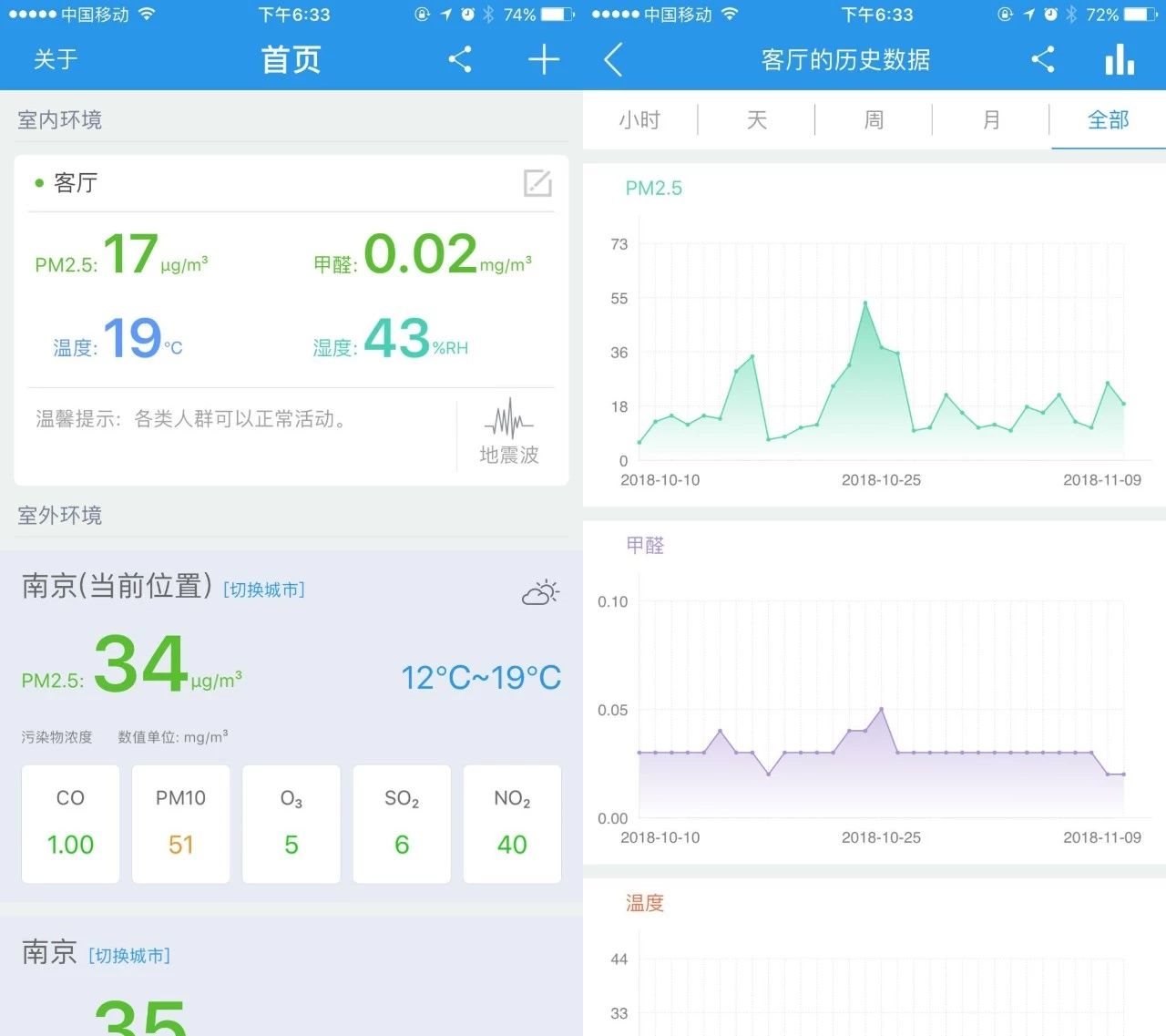 環(huán)境貓,讓甲醛與PM2.5看得見(jiàn),四季皆可使用。秋冬季節(jié),室外霧霾高發(fā),室內(nèi)甲醛也一刻不得“安寧”,備上一臺(tái)環(huán)境貓,很有必要。