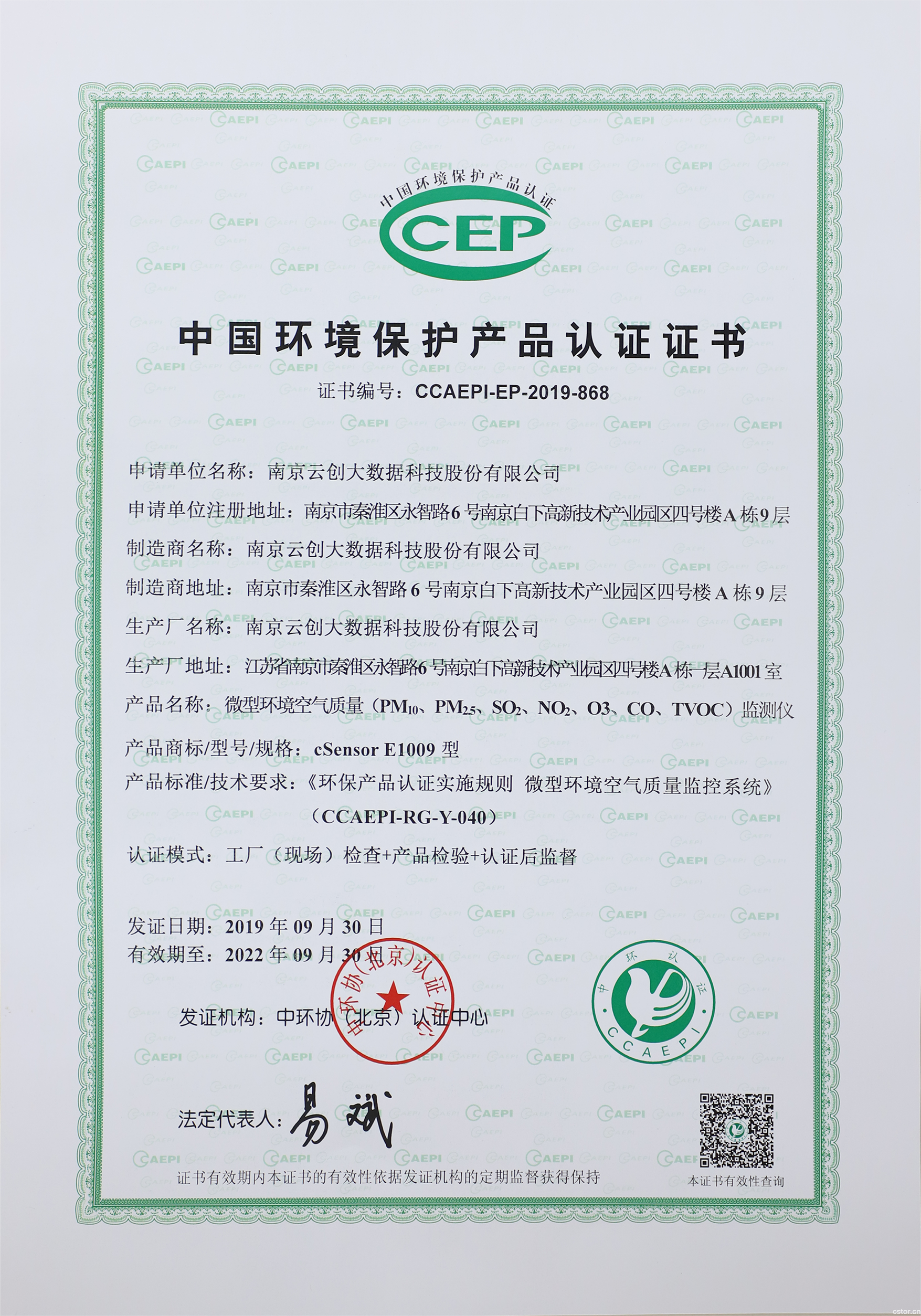近日,經(jīng)“工廠(現(xiàn)場(chǎng))檢查+產(chǎn)品檢驗(yàn)+認(rèn)證后監(jiān)督”等認(rèn)證模式,云創(chuàng)大數(shù)據(jù)開(kāi)發(fā)的cSensor E1009微型環(huán)境空氣質(zhì)量監(jiān)測(cè)儀順利通過(guò)中國(guó)環(huán)境保護(hù)產(chǎn)品認(rèn)證。