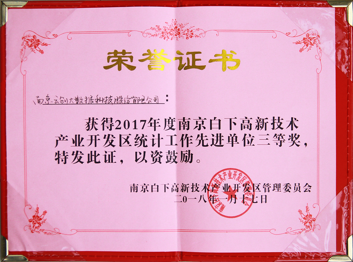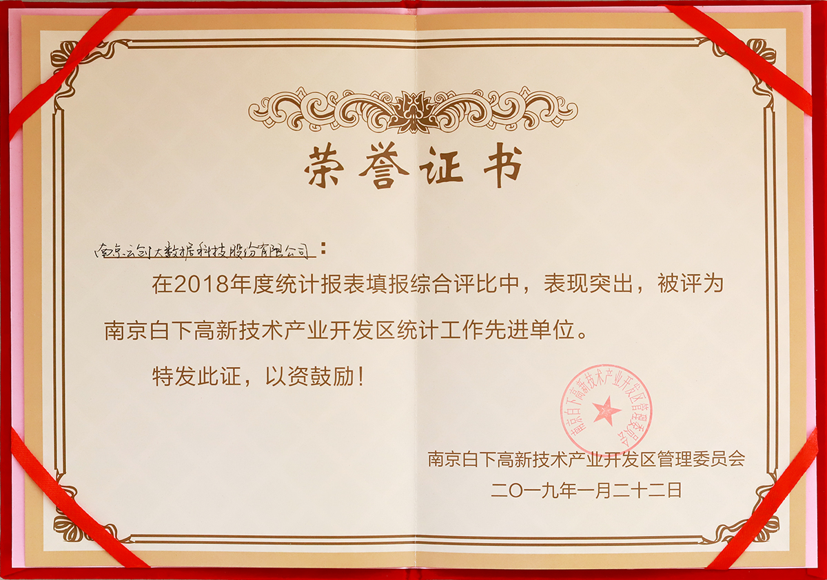 本次評(píng)比通過對(duì)開發(fā)區(qū)內(nèi)企業(yè)填報(bào)的研究經(jīng)費(fèi)支出、研發(fā)機(jī)構(gòu)數(shù)量、高企資質(zhì)、研發(fā)人員數(shù)量、專利申請(qǐng)授權(quán)數(shù)目等數(shù)據(jù)以及企業(yè)報(bào)表上傳的及時(shí)性、配合度等多方面進(jìn)行綜合評(píng)審。經(jīng)過多方考量,云創(chuàng)大數(shù)據(jù)榮獲“2019年度南京白下高新技術(shù)產(chǎn)業(yè)開發(fā)區(qū)統(tǒng)計(jì)工作先進(jìn)單位”,這也是云創(chuàng)繼2017、2018年度后再度摘得此次殊榮。至此,云創(chuàng)已經(jīng)連續(xù)三年獲評(píng)“南京白下高新技術(shù)產(chǎn)業(yè)開發(fā)區(qū)統(tǒng)計(jì)工作先進(jìn)單位”!