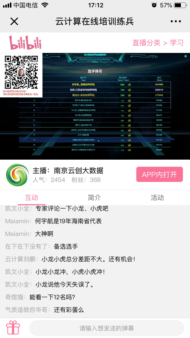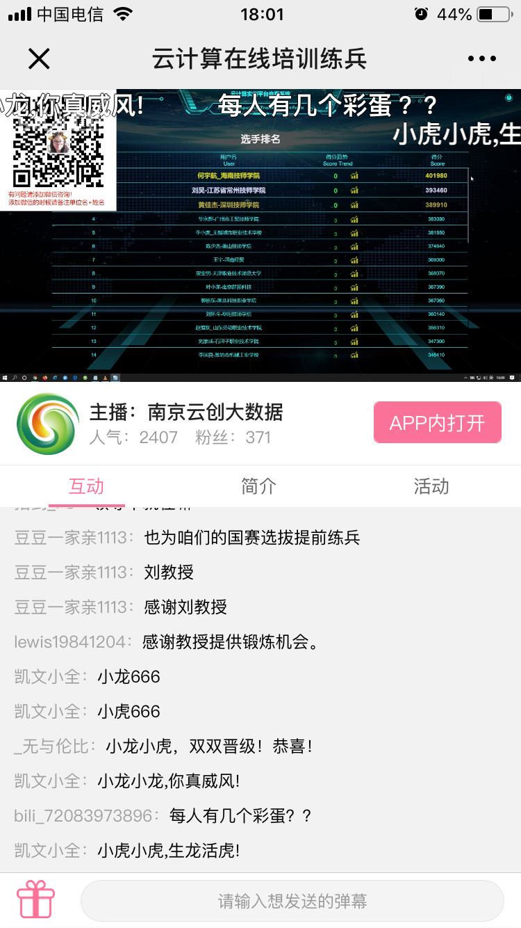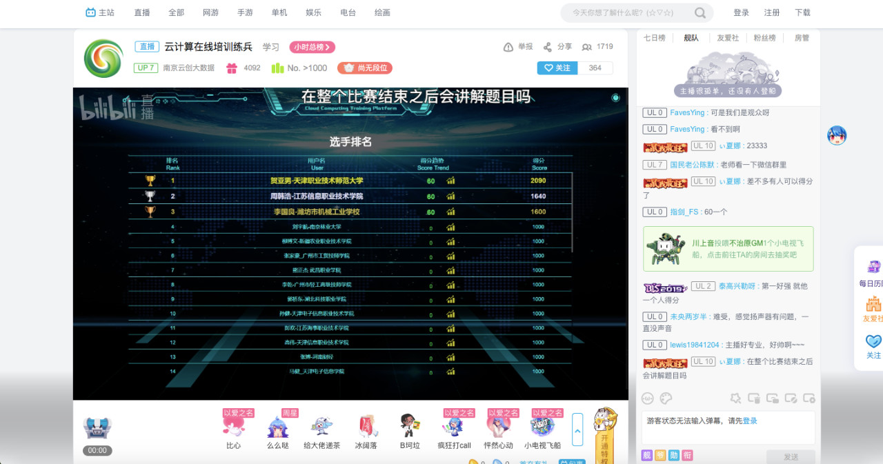 直播一開始,講師首先帶大家簡單回顧了練兵的比賽規(guī)則、獎(jiǎng)勵(lì)機(jī)制、競賽平臺(云創(chuàng)云計(jì)算實(shí)訓(xùn)平臺)等相關(guān)細(xì)節(jié)。對于大家提出的各種問題,兩位講師也給予了詳盡的回答。在彈幕區(qū),大家還時(shí)不時(shí)為自己的同學(xué)、校友能夠取得好名次加油打氣。