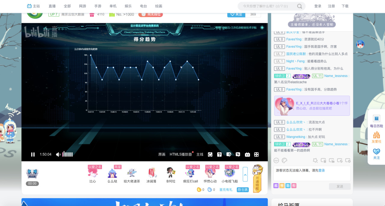 在比賽過程中,隨著每位選手的得分變化,排名變化實(shí)時(shí)呈現(xiàn)在屏幕畫面中。對于參賽選手的得分事件、得分趨勢、得分點(diǎn)以及失分點(diǎn)等,講師也及時(shí)為大家做出解析。值得一提的是,彩蛋的獲得,每一個(gè)整點(diǎn)(15點(diǎn)、16點(diǎn)、17點(diǎn))的選手排名變化情況,一度成為講師與大家分享的重點(diǎn)話題。