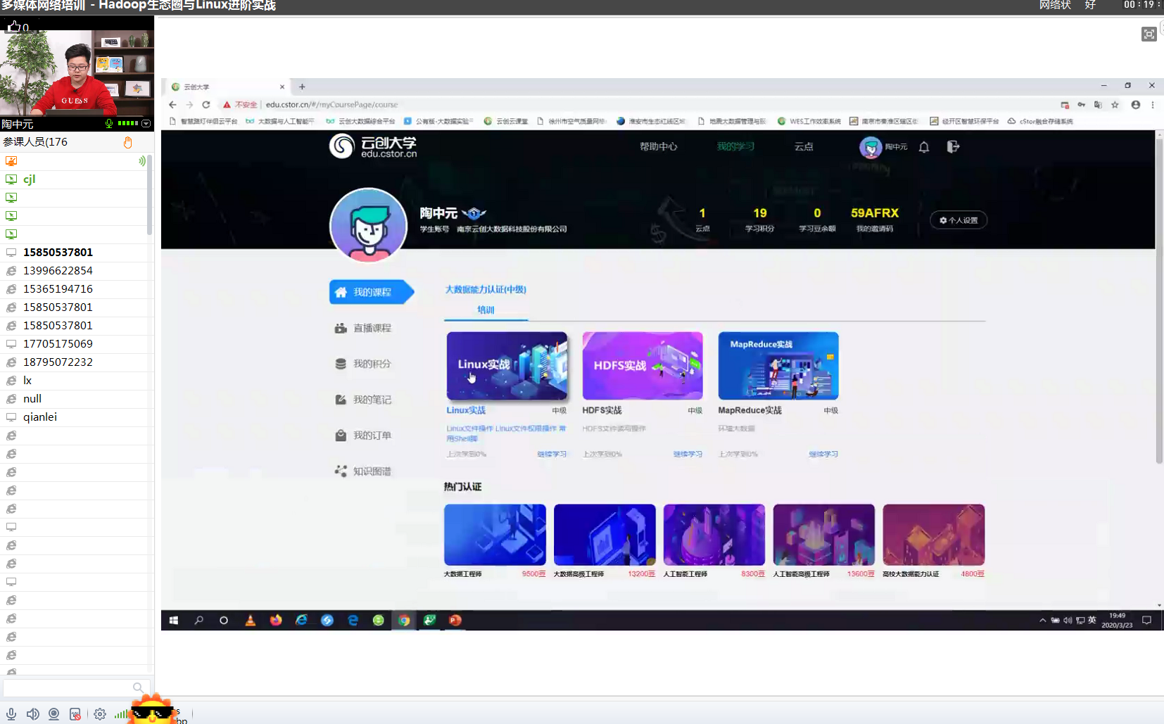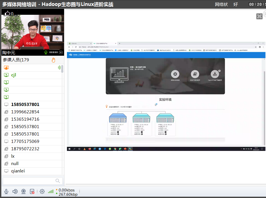在當(dāng)天的課程中,云創(chuàng)大數(shù)據(jù)優(yōu)秀講師(工程師)陶中元帶來了第一課“Hadoop生態(tài)圈與Linux進(jìn)階實(shí)戰(zhàn)”的課程講解。陶中元講師從基礎(chǔ)的理論知識講起,再到實(shí)戰(zhàn)操作,一步步帶大家完成了學(xué)習(xí)和實(shí)驗(yàn)。大家對陶中元講師詳盡細(xì)致的知識講解和認(rèn)真負(fù)責(zé)的授課態(tài)度給予不俗評價。同時,云創(chuàng)開發(fā)工程師組成的助教團(tuán)隊(duì)也守候在彈幕區(qū),替大家解決遇到的各種疑難問題。
