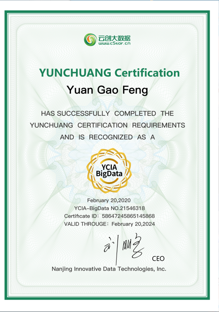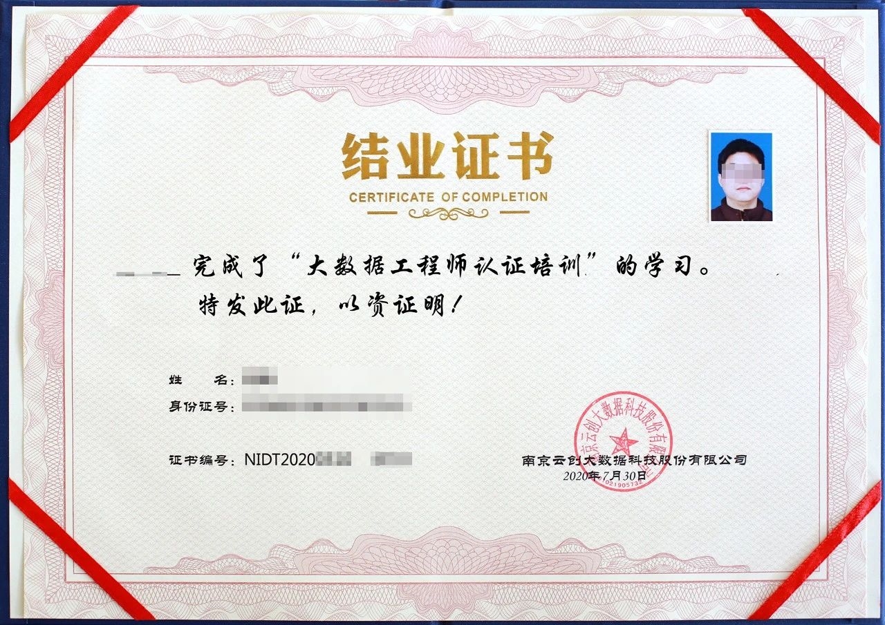 對于參加訓練營的學員,完成培訓統(tǒng)一頒發(fā)“結(jié)業(yè)證書”;通過云創(chuàng)認證考試且成績合格,才能獲得“大數(shù)據(jù)工程師認證證書”,以此作為專業(yè)技術(shù)人員職業(yè)能力考核的證明。