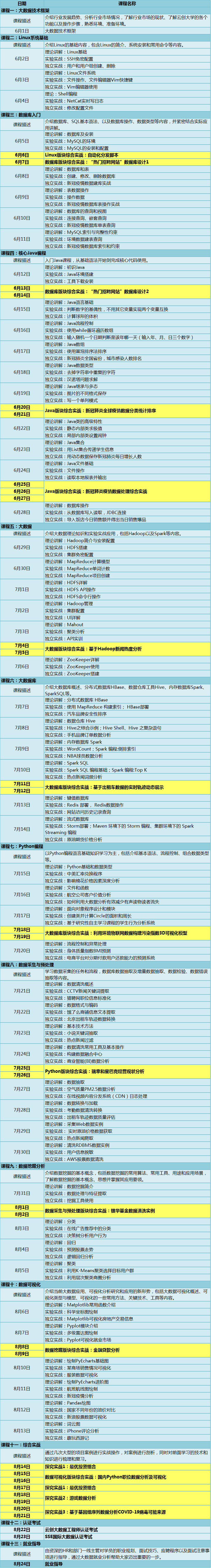 本次訓練營主要針對大專以上,有學習能力,有重塑自我精神的相關(guān)專業(yè)學生。通過理論學習與在線實驗的方式,幫助學員真正獲得實戰(zhàn)經(jīng)驗,有針對性地提升職業(yè)技能,并獲得行業(yè)前沿的企業(yè)認證以及大數(shù)據(jù)行業(yè)的敲門磚。