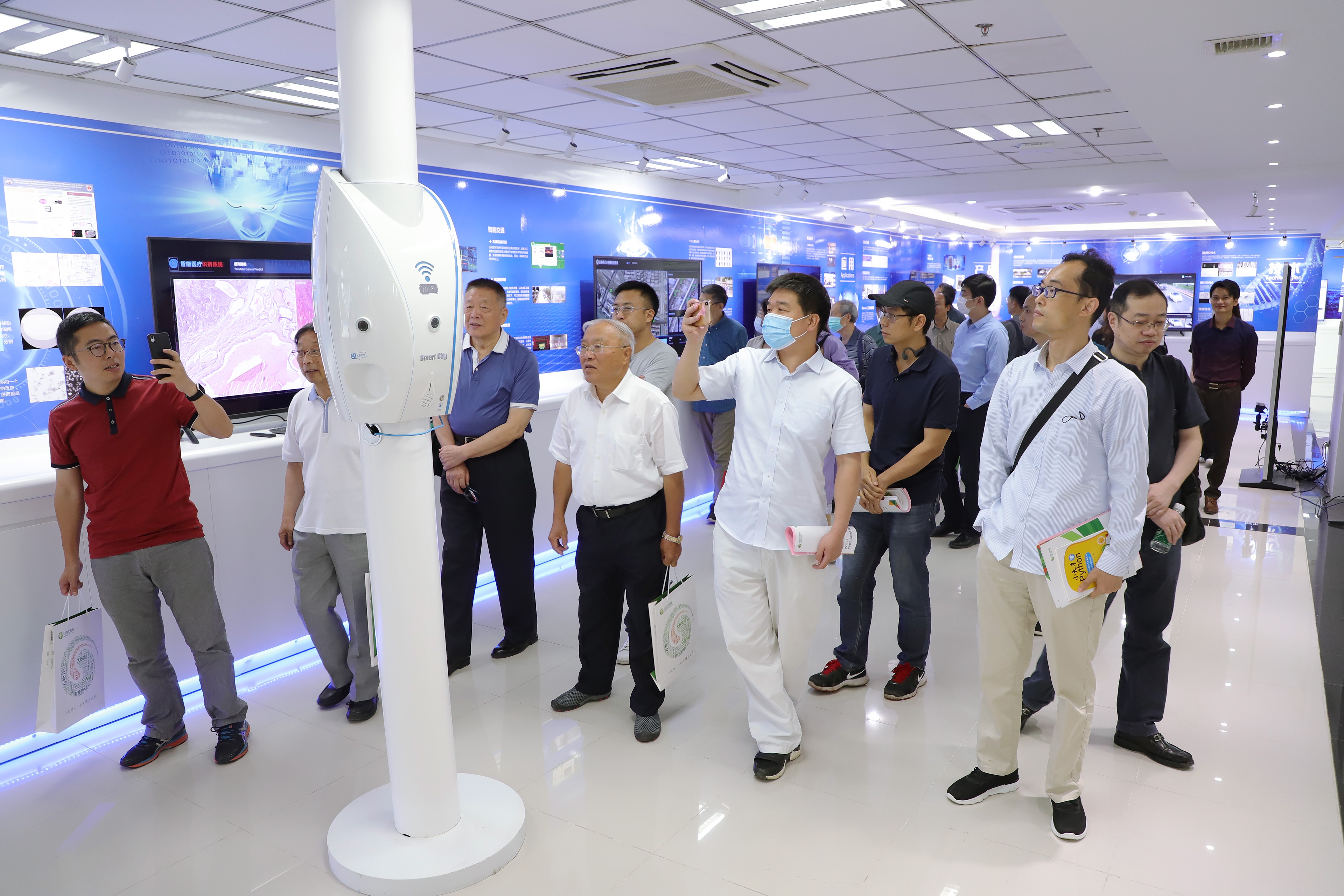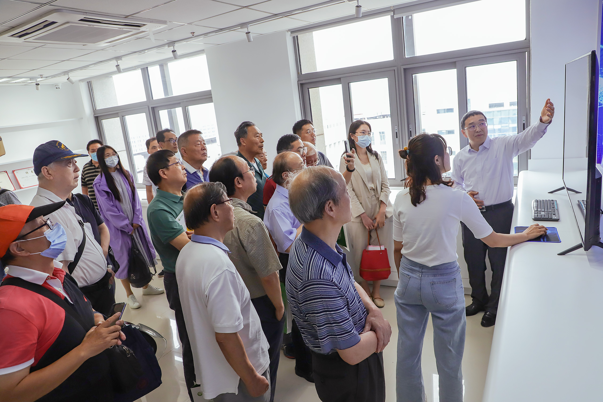 在云創(chuàng)實地參觀環(huán)節(jié),劉鵬教授帶來賓逐一對九樓榮譽資質(zhì)和技術(shù)專利展區(qū)、劉鵬教授主編圖書展區(qū),以及十樓人工智能研究院、云創(chuàng)大學和云創(chuàng)青少年人工智能學院展區(qū)等進行參觀。在聽取劉鵬教授的介紹之余,來賓還就相關(guān)細節(jié)與其進行了探討交流。