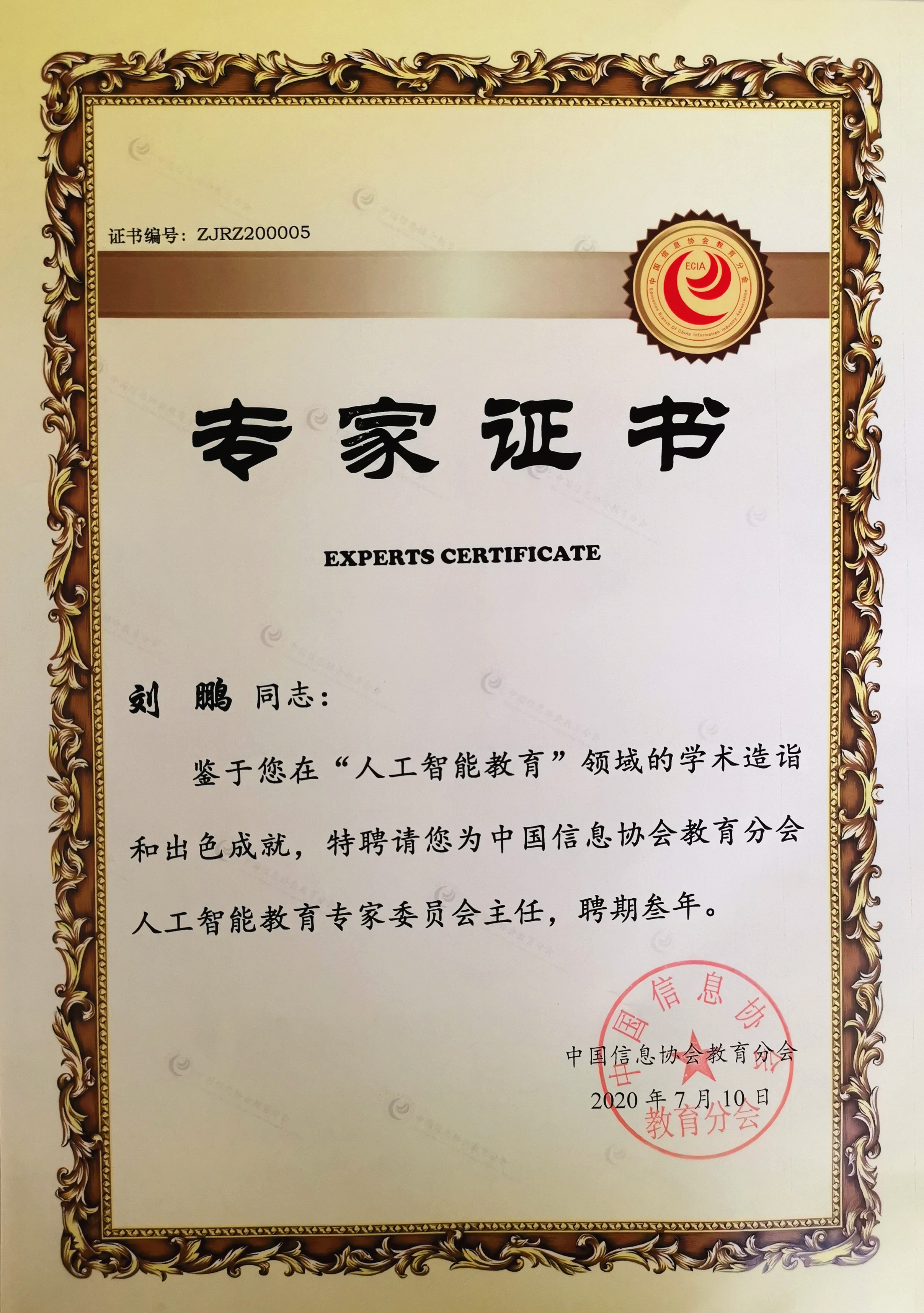 日前,清華大學(xué)博士、南京大數(shù)據(jù)研究院院長、云創(chuàng)大數(shù)據(jù)總裁劉鵬教授憑借在人工智能教育領(lǐng)域的學(xué)術(shù)造詣和出色成就,受聘為中國信息協(xié)會教育分會人工智能教育專家委員會主任,周長春會長、丁書林常務(wù)副會長、尤丹立副會長為其頒發(fā)了證書。
