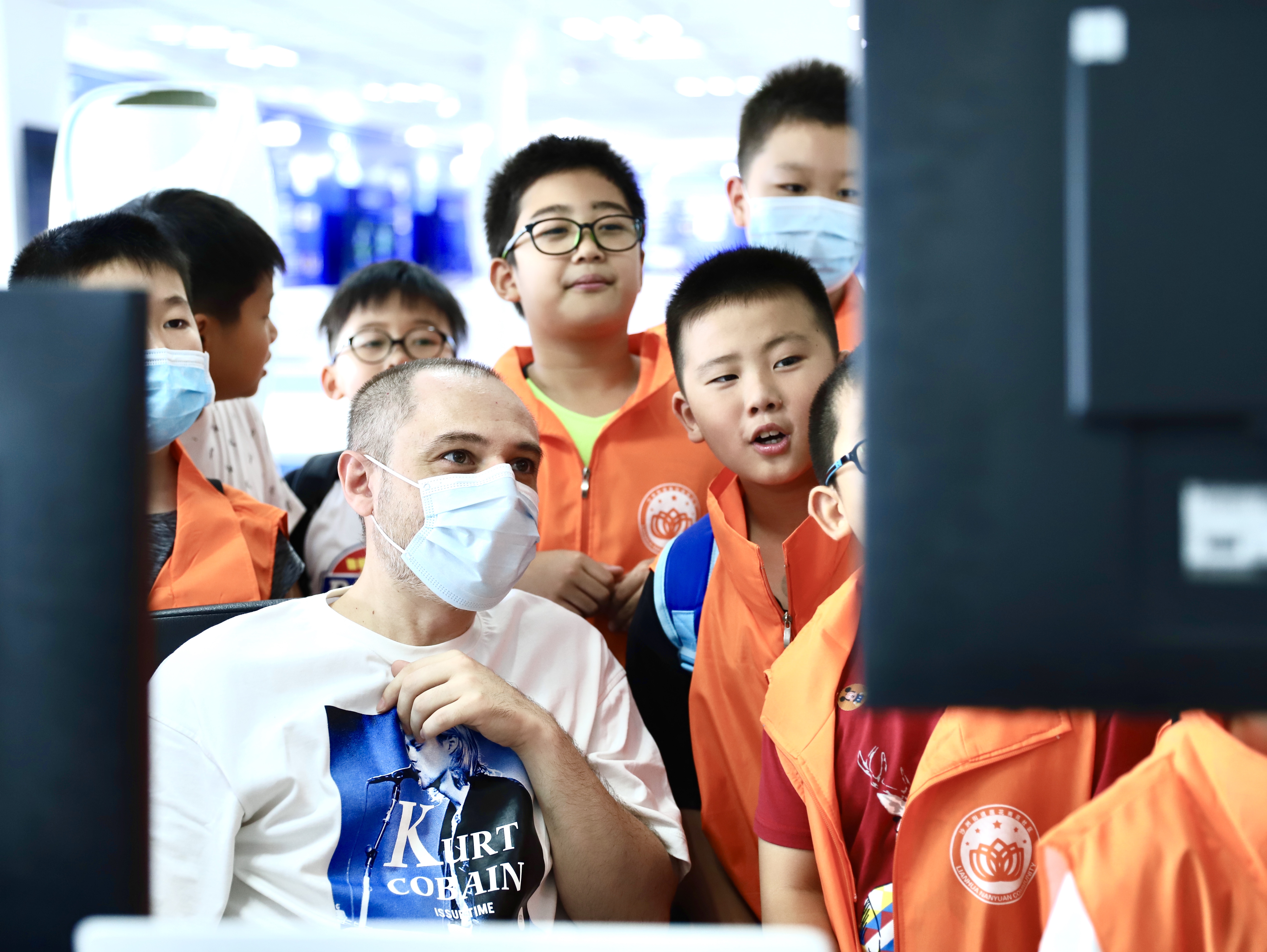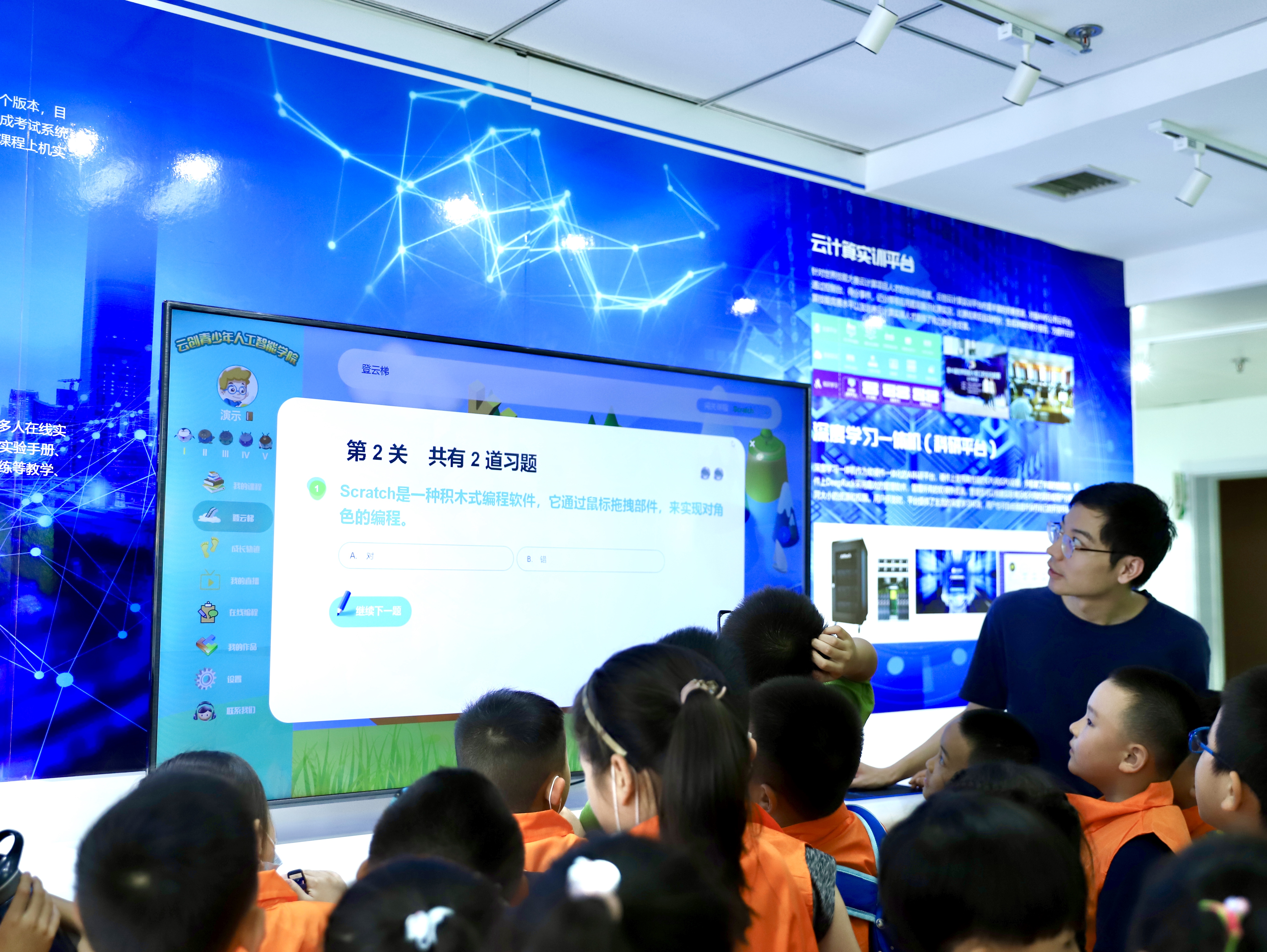 接著,K12教育事業(yè)部湯鵬老師帶領(lǐng)小朋友們對云創(chuàng)進(jìn)行了實地參觀。九樓展示的人臉識別技術(shù)、云創(chuàng)大數(shù)據(jù)運營中心,十樓的云創(chuàng)大學(xué)和青少年人工智能學(xué)院展區(qū)等給小朋友們留下了深刻印象。同時,谷勇老師還帶小朋友們了解了少兒編程課程,并讓小朋友們體驗了人工智能教育機(jī)器人——機(jī)甲大師。