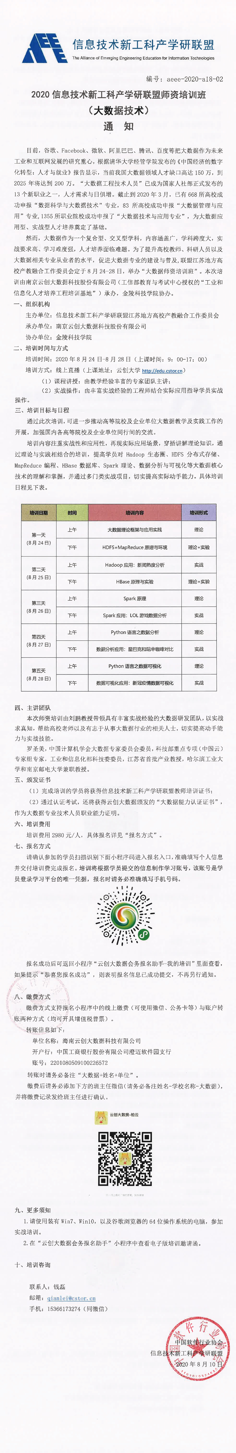 (大數(shù)據(jù)技術(shù))歡迎參加2020信息技術(shù)新工科產(chǎn)學(xué)研聯(lián)盟師資培訓(xùn)班!