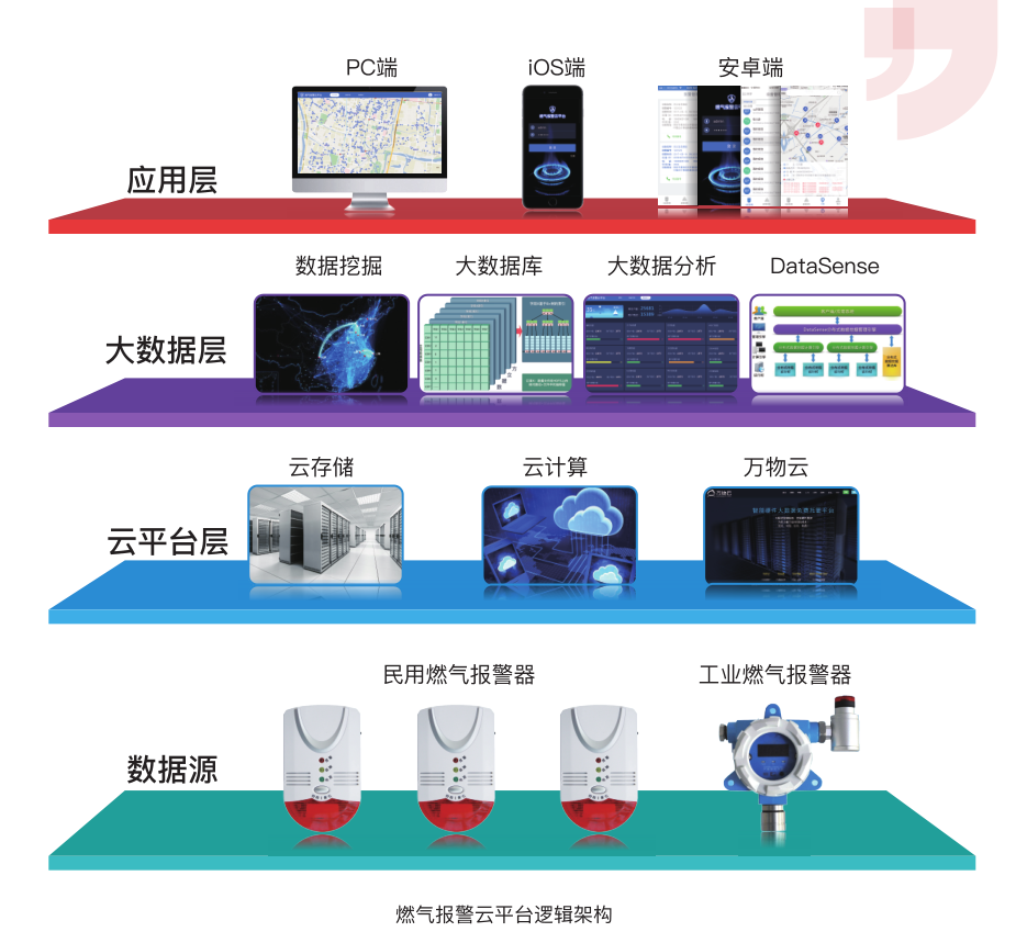 燃?xì)鈭?bào)警云平臺(tái)通過燃?xì)鈭?bào)警傳感器結(jié)合云技術(shù)監(jiān)測系統(tǒng),構(gòu)建前端燃?xì)鈭?bào)警器和中心端大數(shù)據(jù)云計(jì)算支撐平臺(tái),建立燃?xì)鈭?bào)警管理體制,為居民區(qū)、餐飲企業(yè)、地下商場、儲(chǔ)藏室等應(yīng)用場所提供豐富的應(yīng)用服務(wù)、技術(shù)支撐、預(yù)測預(yù)警、輔助決策等功能,幫助減少燃?xì)獗ㄊ鹿省?/p>
