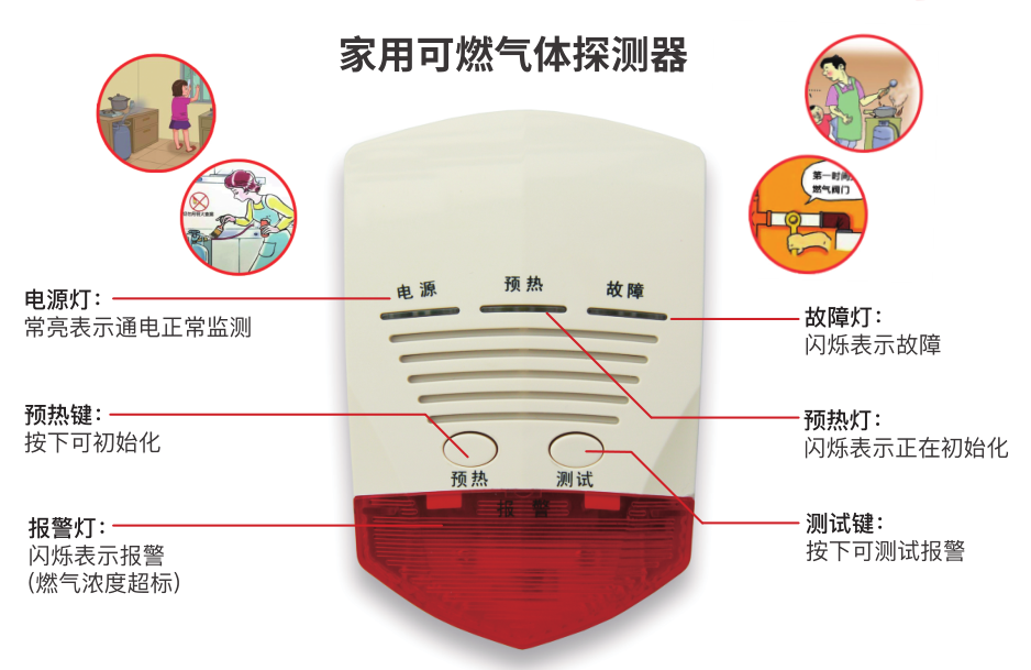 燃?xì)鈭?bào)警云平臺(tái)前端數(shù)據(jù)采集采用通過國家強(qiáng)制性產(chǎn)品認(rèn)證的燃?xì)鈭?bào)警設(shè)備——GTII型獨(dú)立式可燃?xì)怏w探測器,每當(dāng)報(bào)警燈發(fā)出聲、光報(bào)警,即提示燃?xì)鉂舛瘸瑯?biāo)。
