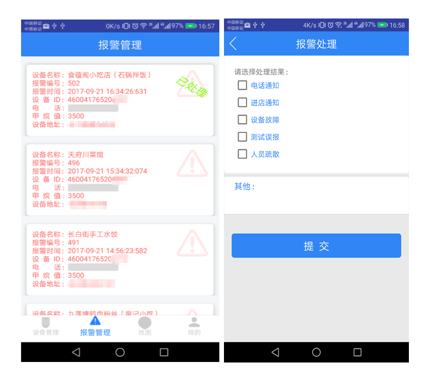 每當(dāng)前端監(jiān)控的燃?xì)庠O(shè)備出現(xiàn)異常情況,云平臺(tái)及時(shí)發(fā)出告警,及時(shí)發(fā)送短信給業(yè)主和街道安全員,發(fā)送短信和電話語音通知給公司第一運(yùn)維人員,第一運(yùn)維人員收到通知后打開手機(jī)APP,查看告警日志,并跟蹤此次事件進(jìn)行處理。